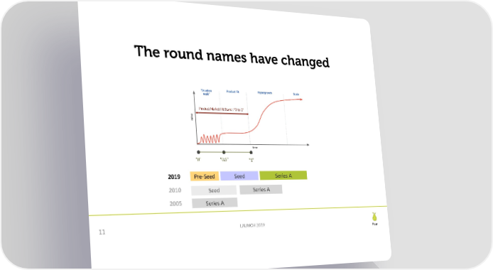 The round names have changed Product Market Fit Stage : “0 to 1” “0” “0.5” “1” 2019 Pre-Seed Seed Series A 2010 Seed Series A 2005 Series A 11 LAUNCH 2019 Pear